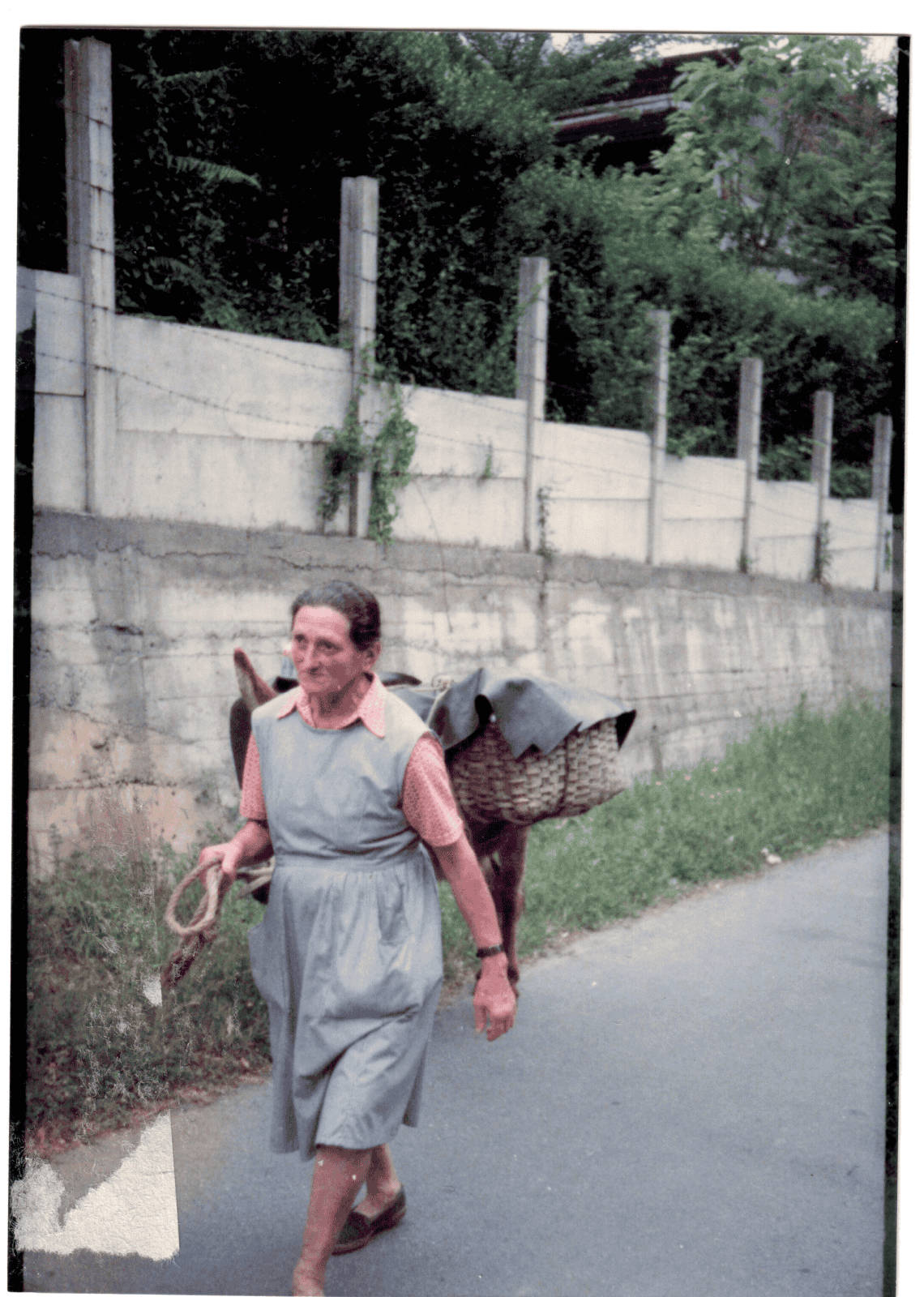 Con la burra y los cestos cargados